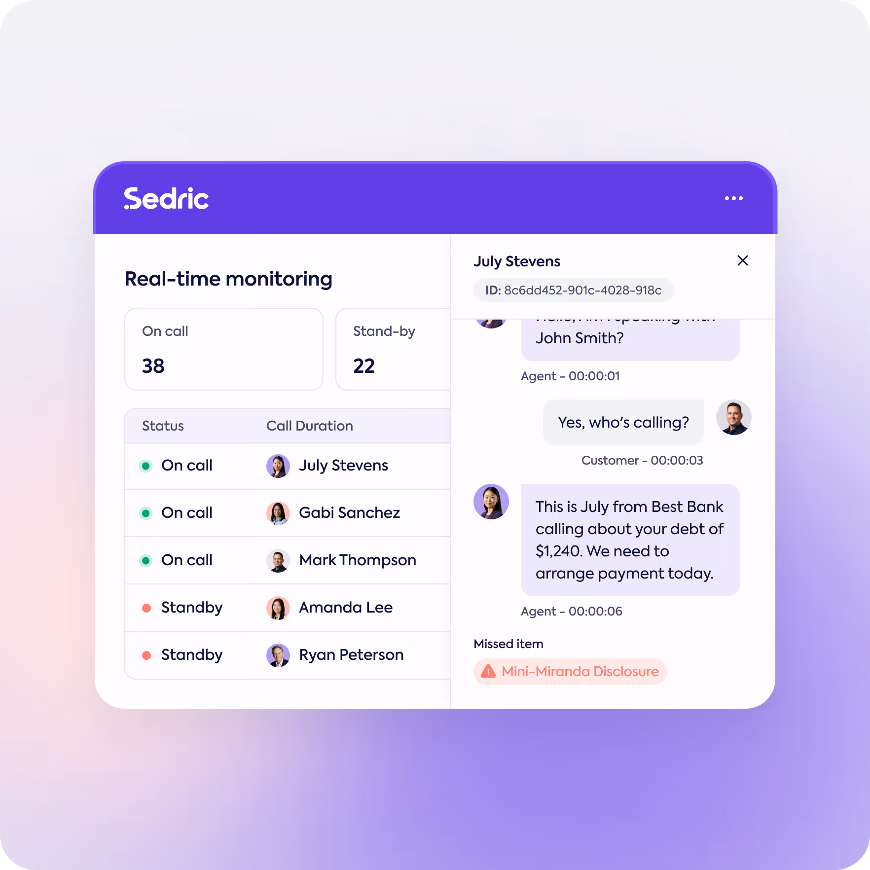 Sedric is SOC 2 Type II compliant and provides full traceability across data, decisions, and activity—supporting audits, reviews, and enterprise due diligence.